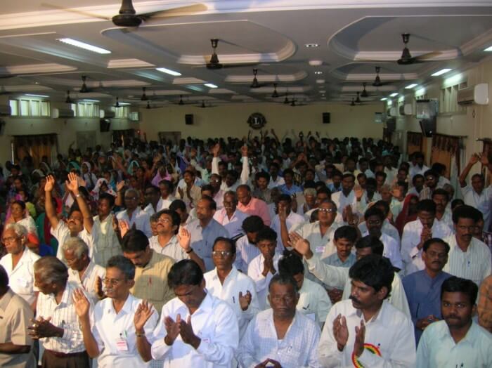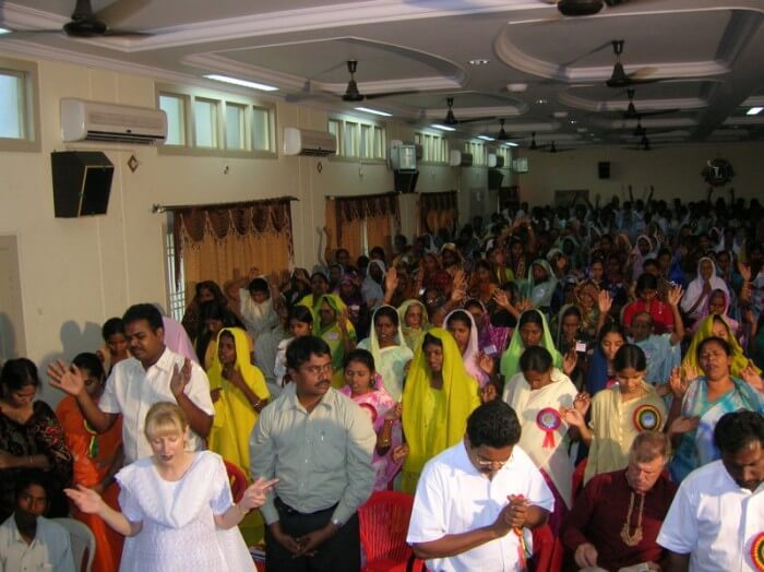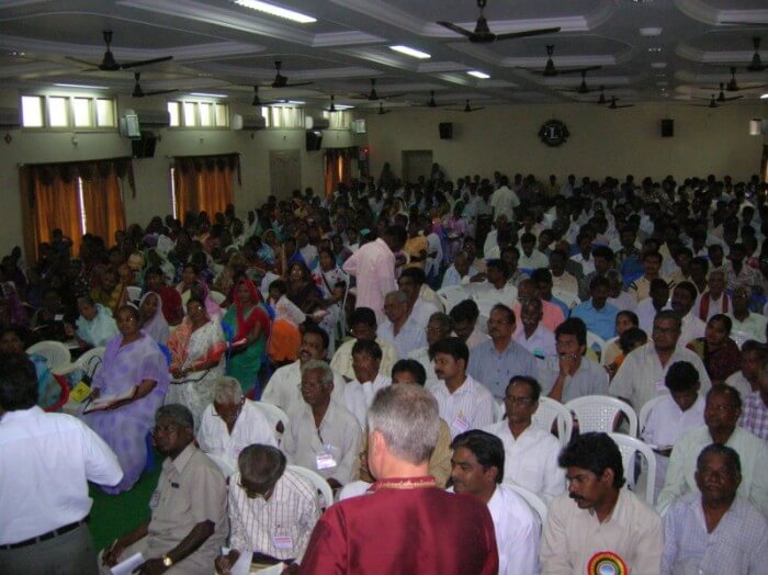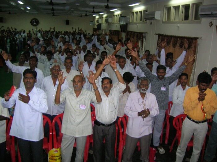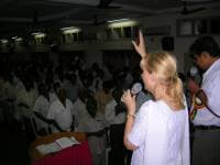 On the last day I spoke on the Holy Spirit, and then asked for an indication of those in the meeting who would like to be filled with the Holy Spirit with the evidence of speaking in tongues, and approximately 550 Pastors raised their hands. I then led them in a general prayer and then the Holy Spirit wonderfully filled the people with the evidence of speaking in tongues. Again two ladies operated the gift of other tongues and interpretation and prophesied in an unknown language and then interpreted in Telegu. Just like in the Book of Acts. Amazing.