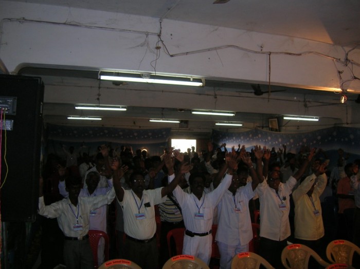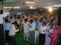 The Pastors and Leaders of Jangareddigudem were very hungry for the Word. Some of the topics preached were: First the Natural, Church History & Restoration, Melchisedec, Offerings, In the Image of God, The Great Mystery-The Bride of Christ, The Structure of the Church, Revelation 12, Daniel's 70 Weeks Prophecy, End Times, The Name of the Godhead, Water Baptism, Healing, and Giving. At the last meeting, about 50 Pastors were prayed for to receive the Holy Spirit with the evidence of speaking in other tones. Some even operated the prophetic gift of tongues and interpretation.