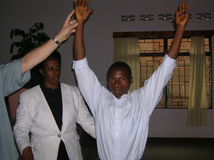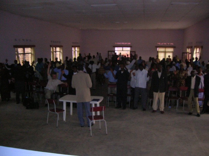 At one session about 60 Pastors & Leaders were filled with the Holy Spirit with the evidence of speaking in other tongues. One Burindi man was filled with the Holy Spirit and prophesised in English (which he does not know, but Jim and I heard the prophecy as well as others who spoke English). This was just like in the book of Acts. The prophecy was that "the Lord had sent these servants with His Truth".
