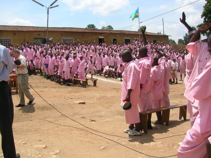 This prison is for those who were part of the genocide in the early 1990s. Apparently on Fridays, it is family visiting day, and that is the priority, however the Prison Director did allow us to speak, even with the families present!