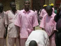 We were then led to the outdoor compound area, and ushered through the actual prisoners, with Guards round about. All 3,000 prisoners (males and females) were dressed in their pink prison uniform and were located to the right and the 600 family members who were separated by a thin rope, were to the left. They was no singing. No atmosphere. Just curiosity, anticipation and expectation by everyone, about these visitors from abroad.