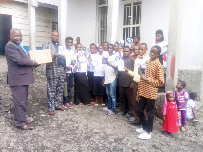 Distributing FAIB’s books “Dieut’aime”