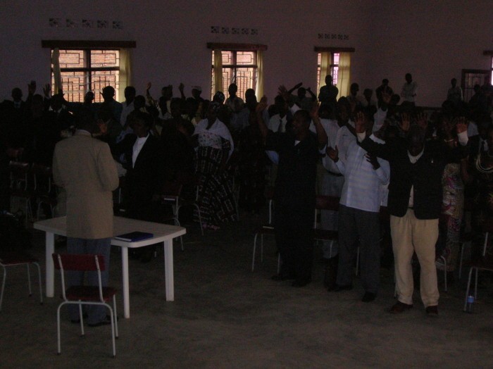 At one session about 60 Pastors & Leaders were filled with the Holy Spirit with the evidence of speaking in other tongues. One Burindi man was filled with the Holy Spirit and prophesised in English (which he does not know, but Jim and I heard the prophecy as well as others who spoke English). This was just like in the book of Acts. The prophecy was that "the Lord had sent these servants with His Truth".