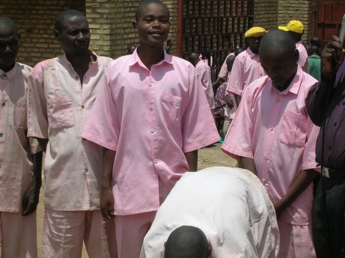We were then led to the outdoor compound area, and ushered through the actual prisoners, with Guards round about. All 3,000 prisoners (males and females) were dressed in their pink prison uniform and were located to the right and the 600 family members who were separated by a thin rope, were to the left. They was no singing. No atmosphere. Just curiosity, anticipation and expectation by everyone, about these visitors from abroad.